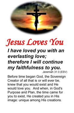 Before time began God, the Sovereign Creator of all that is or will ever be, knew that you would exist and He would love you. And when, in God’s Purpose and Plan, the time came for you to exist, He created you in His image: unique among His creations.